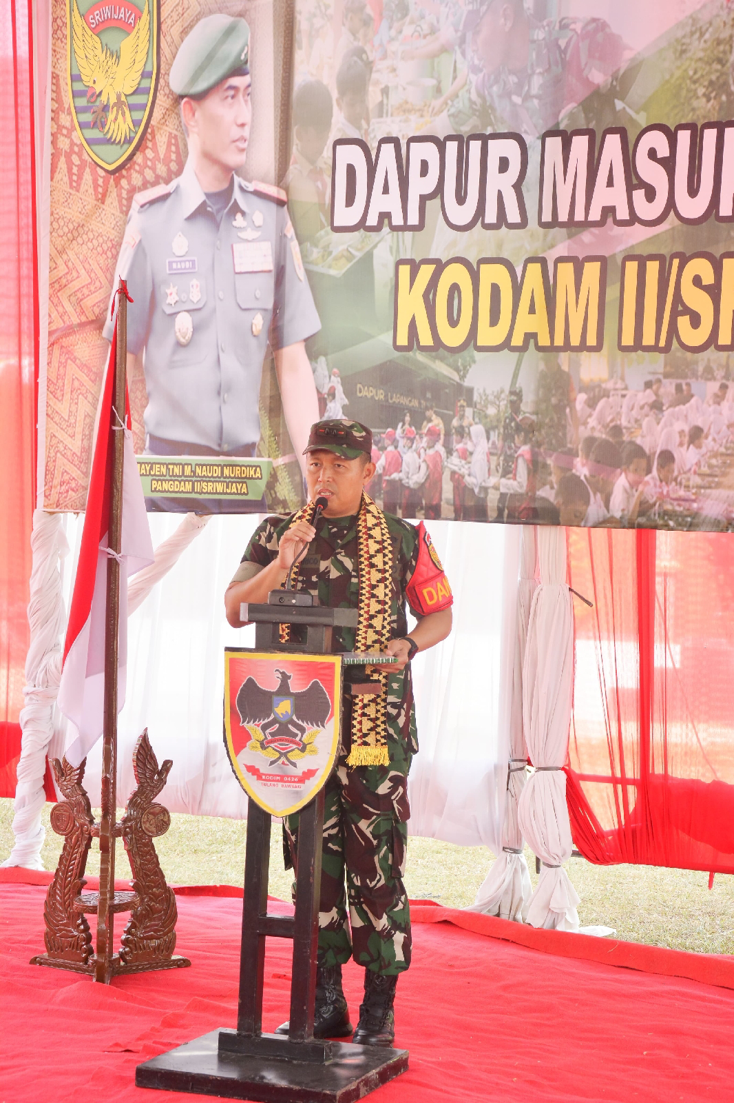 Dalam sambutan Komandan Kodim 0426 Tulang Bawang, Letkol Kav Delvy Marico, S.E., M.I.P, mengatakan terima kasih atas waktunya sehingga Program dapur masuk sekolah ini adalah program unggulan Kodam II/Sriwijaya sudah berjalan 1 tahun, Program ini progam rutin dilaksanakan di seluruh Indonesia, Tujuan Dapur masuk sekolah ini adalah salah satu program membantu menurunkan angka stunting, dan menumbuhkan rasa cinta tanah air dengan ini kami mengajak kepada Pemerintah Kabupaten untuk mencerdaskan anak bangsa bersama sama, Kedepannya program pemerintah akan dilaksanakan program dapur sehat yang akan tersebar di seluruh indonesia yaitu Program makan siang gratis,” ujar Dandim.