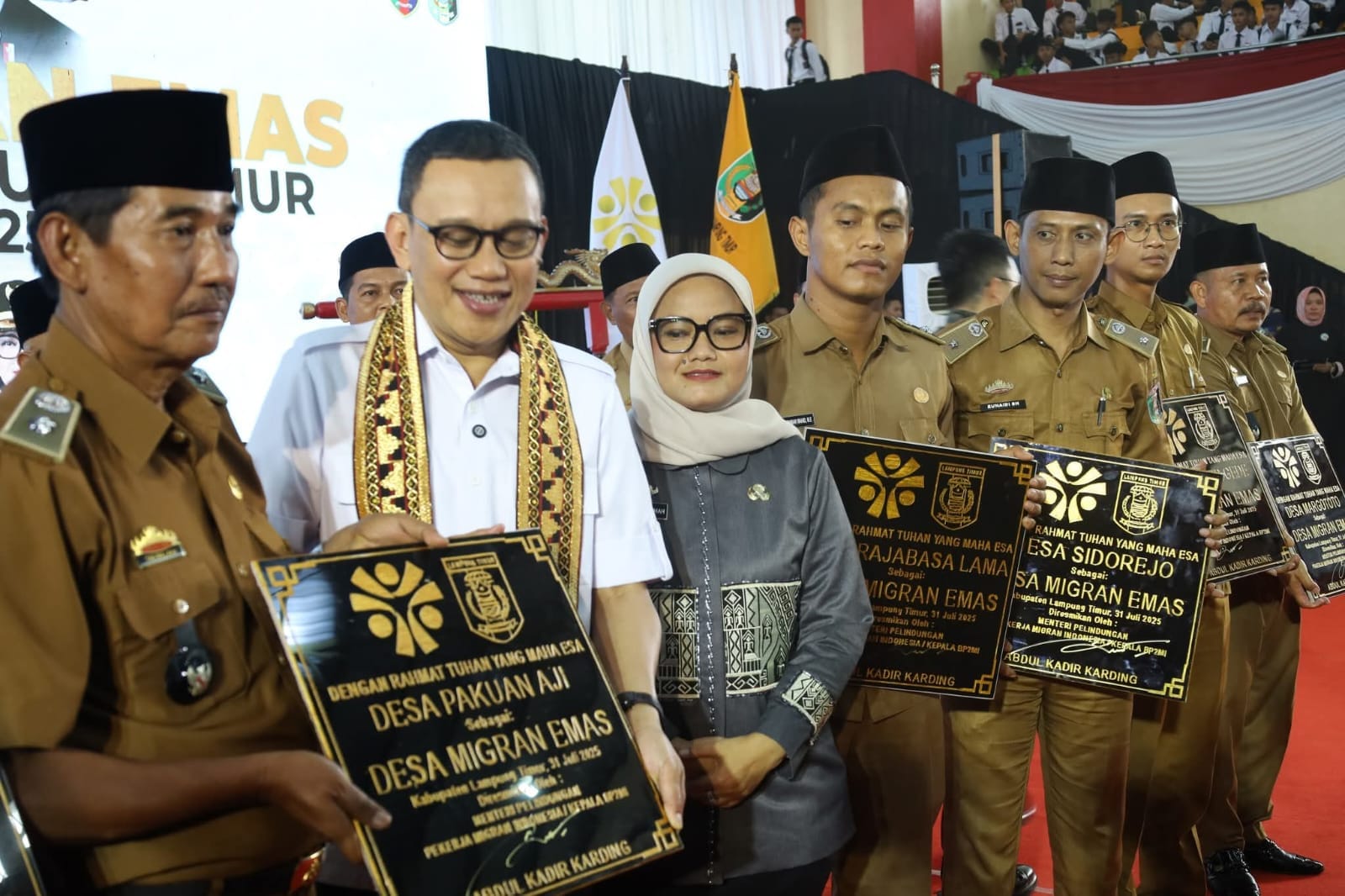SketsaPost | Lampung Timur – Menteri Perlindungan Pekerja Migran Indonesia (P2MI), Abdul Kadir Karding, secara resmi melaunching 20 Desa Migran Emas di GOR Bumi Tuah Bepadan, Lampung Timur, Kamis, (31 Juli 2025).
